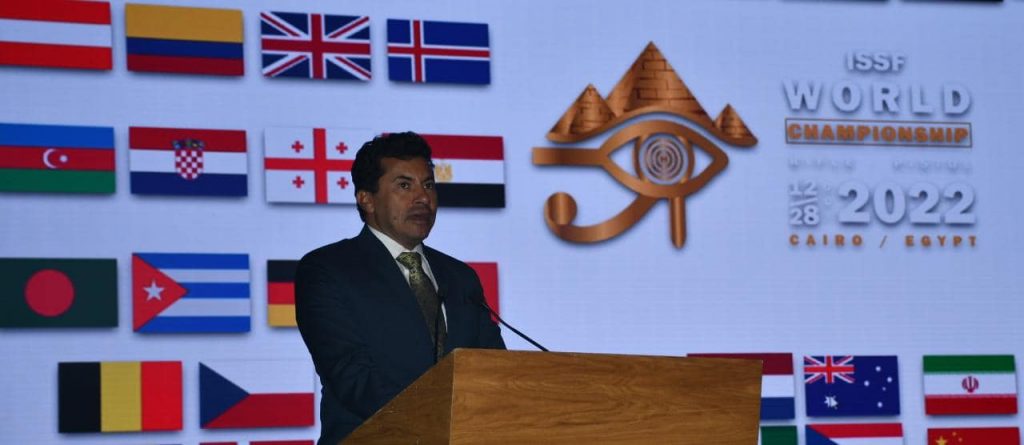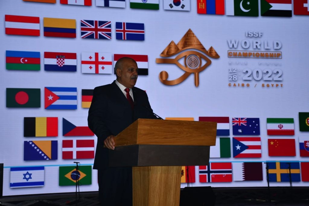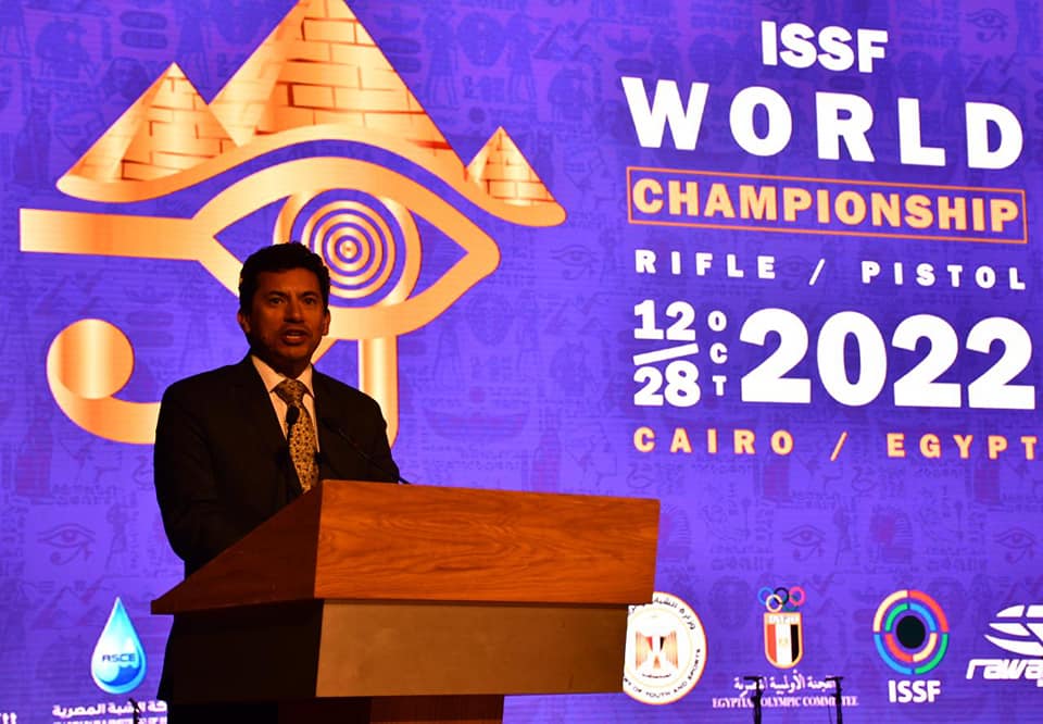 بالصور.. وزيرا الرياضة والثقافة ورئيس الدولي للرماية يشهدون افتتاح بطولة العالم لرماية المسدس والبندقية
