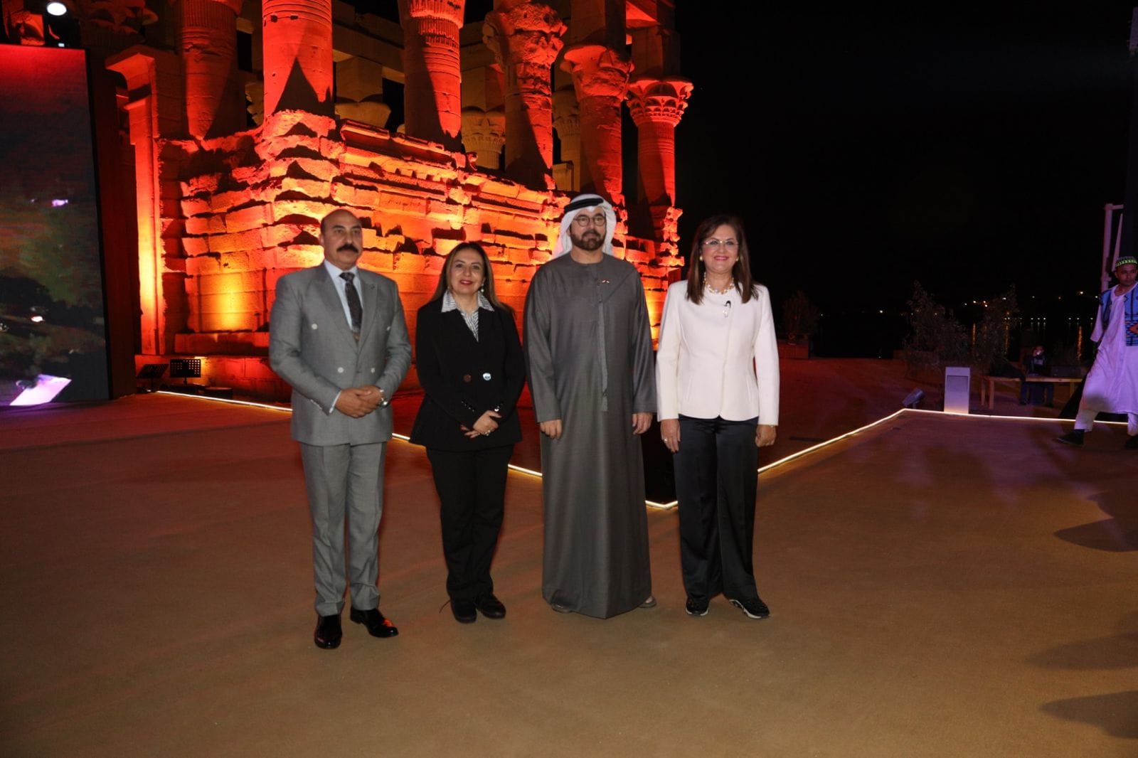 افتتحت الدكتورة هالة السعيد، وزيرة التخطيط والتنمية الاقتصادية، حفل العشاء الرسمي المقام بمعبد فيله بمناسبة افتتاح “مركز خدمات مصر” بمحافظة أسوان، وذلك بحضور معالي السيد محمد بن عبد الله القرقاوي، وزير شئون مجلس الوزراء بدولة الإمارات العربية المتحدة، واللواء هشام آمنة، وزير التنمية المحلية، واللواء أشرف عطية، محافظ أسوان، والسير دكتور مجدي يعقوب، والمهندس إبراهيم سرحان، رئيس مجلس إدارة شركة إيفاينانس.