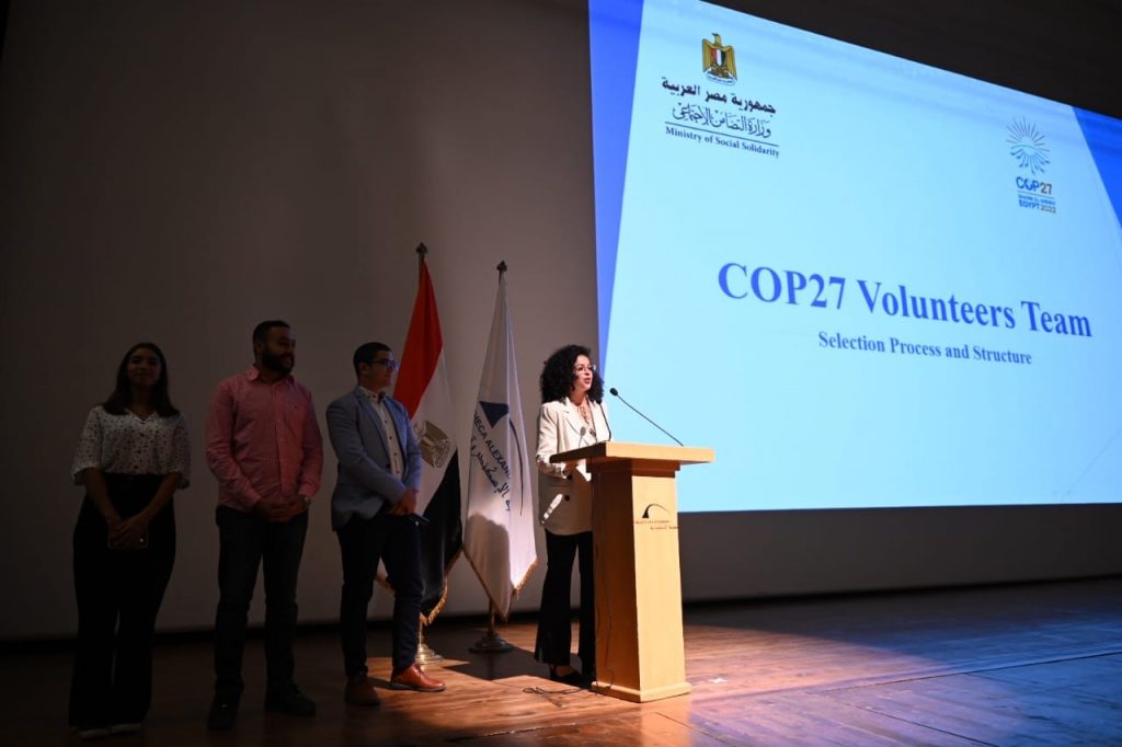 دشنت نيفين القباج – وزيرة التضامن الاجتماعي برنامج المتطوعين المشاركين في تنظيم مؤتمر قمة الدول الأطراف فى اتفاقية الأمم المتحدة الإطارية بشأن تغير المناخ COP27، والتي تستضيف فعالياتها مدينة شرم الشيخ في نوفمبر المقبل، حيث وجهت وزيرة التضامن الاجتماعي كلمة عبر تقنية الفيديو كونفرنس للمتطوعين عبر تجمعهم بمكتبة الإسكندرية.