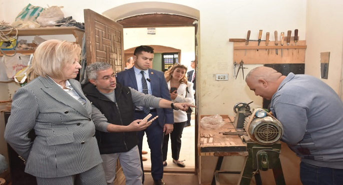 حيث تفقدت وزيرة الثقافة الأردنية، مركز الحرف بأقسامه المختلفه،وتعرفت على دور وأهمية مركز الحرف التقليدية بالفسطاط في دعم قطاع الصناعات الإبداعية في مصر، كما تعرفت على مختلف المراحل التى تمر بها عملية التصنيع والإبداع بمختلف أقسام مركز الحرف، ومنها الخزف، الزجاج المعشق، الحفر على الخشب، تشكيل النحاس، السجاد اليدوي، الحلي، ثم تفقدت منفذ البيع بالمركز والذي يعرض مجموعة منتقاه من أفضل الأعمال التى ينتجها مركز الحرف.