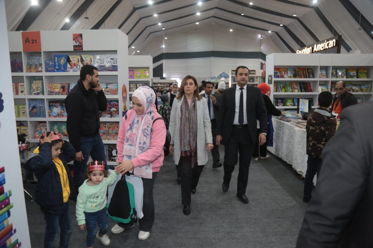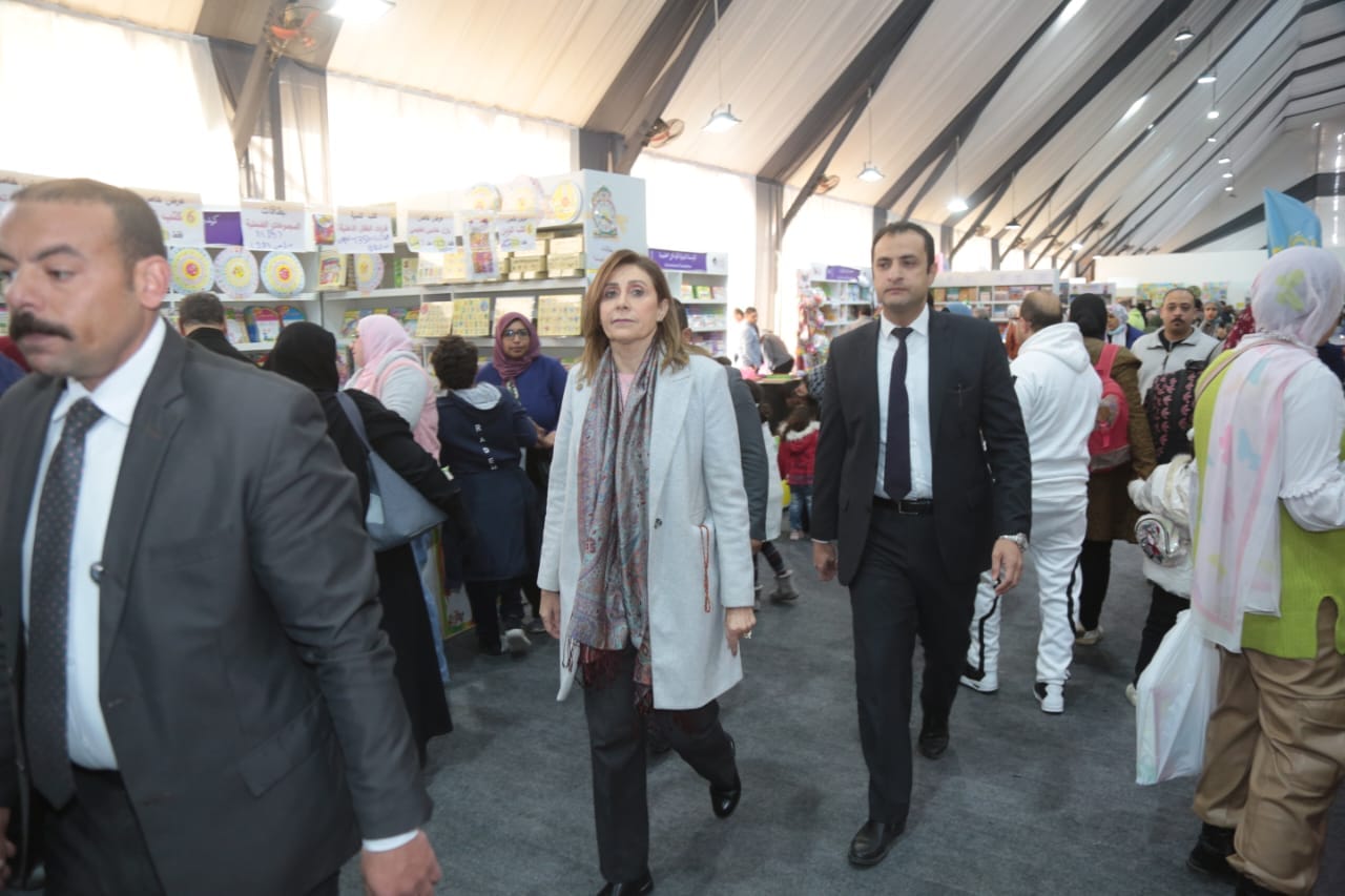 حيث استهلت الجولة التفقدية، بمشاركة وزيرة الثقافة لجمهور المعرض، متابعة عرض الليلة الكبيرة وعروض التنورة وعرض موسيقي لمملكة النرويج ضيف شرف المعرض، وسط حشد جماهيري كبير، أعقب ذلك تفقدها للقاعة المخصصة للطفل، والتي تشتمل عدد من الفعاليات المقدمة للطفل منها: ورش الحكايات، اللقاءات التفاعلية، الورش الفنية التشكيلية، رسم جداريات، العروض المسرحية، وغيرها من الفعاليات المعنية بتطوير وتنمية مهارت الطفل والتي شهدت إقبالًا كبيرًا من الأسرة المصرية التي حرصت على اصطحاب أبنائها، للاستفادة من الفعاليات المتنوعة التي يقدمها المعرض للطفل، والتي يُشرف عليها المركز القومي لثقافة الطفل، التابع لوزارة الثقافة، ويتضمن العديد من الأنشطة والفعاليات المقدمة للنشء.