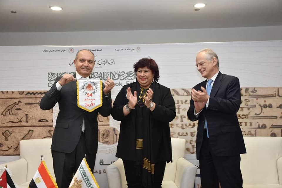شهدت الفنانة الدكتورة إيناس عبد الدايم وزيرة الثقافة حفل هراسم تسليم لقب ضيف الشرف للدورة القادمة من معرض الثاهرة الدولى للكتاب حيث سلم السفير نيكولاوس جاريليديس سفير دولة اليونان بالقاهرة ( ضيف شرف الدورة 53 للمعرض ) راية ضيف الشرف للسفير أمجد العضايلة سفير المملكة الاردنية ( ضيف شدف الدورة 54 للمعرض ) وذلك بحضور الدكتور هيثم الحاح رئيس الهيئة المصرية العامة للكتاب ونائبه الدكتور أحمد بهي الدين وحشد جماهيري واعلامي كبير.