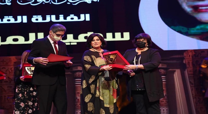 ثم قامت وزيرة الثقافة بإهداء الدروع التذكارية لورواد المسرح المصري،وهم الفنان صلاح السعدني وتسلمه نجله احمد والفنانة سهير المرشدي والمخرج عباس أحمد واسم محمود ياسين تسلمته ابنته رنيا واسم المنتصر بالله تسلمته اسرته واسم الشاعر نجيب سرور وتسلمه الفنان ياسر صادق مدير المركز القومي للمسرح والموسيقى والفنون الشعبية لإيداعه في متحف المركز بالتنسيق مع اسرة الراحل.