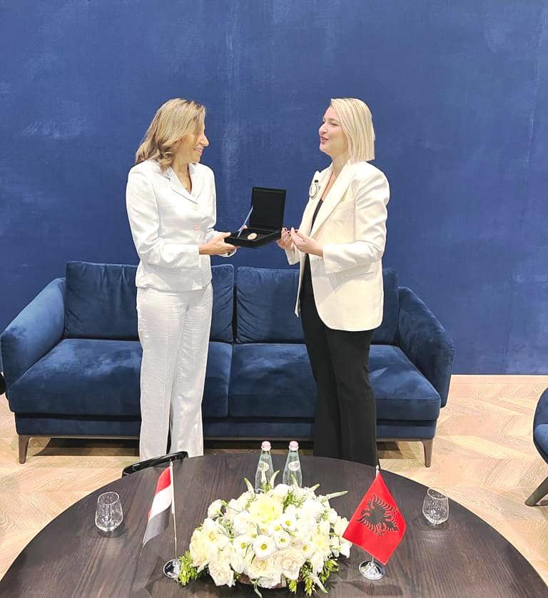 كما تم تبادل الدروع التذكارية، بين وزيرتي الثقافة المصرية والألبانية، وذلك خلال وقائع المؤتمر الصحفي، الذي أُقيم عقب توقيع البروتوكول، حيث أكدت نيفين الكيلاني، على قوة العلاقات بين البلدين، والتي عمقتها زيارة الرئيس إلير ميتا رئيس جمهورية ألبانيا إلى القاهرة عام 2019، وأشارت إلى أن البرتوكول يتضمن العديد من سُبل التعاون، وتبادل الخبرات بين الجانبين في شتى مجالات التعاون الثقافي.