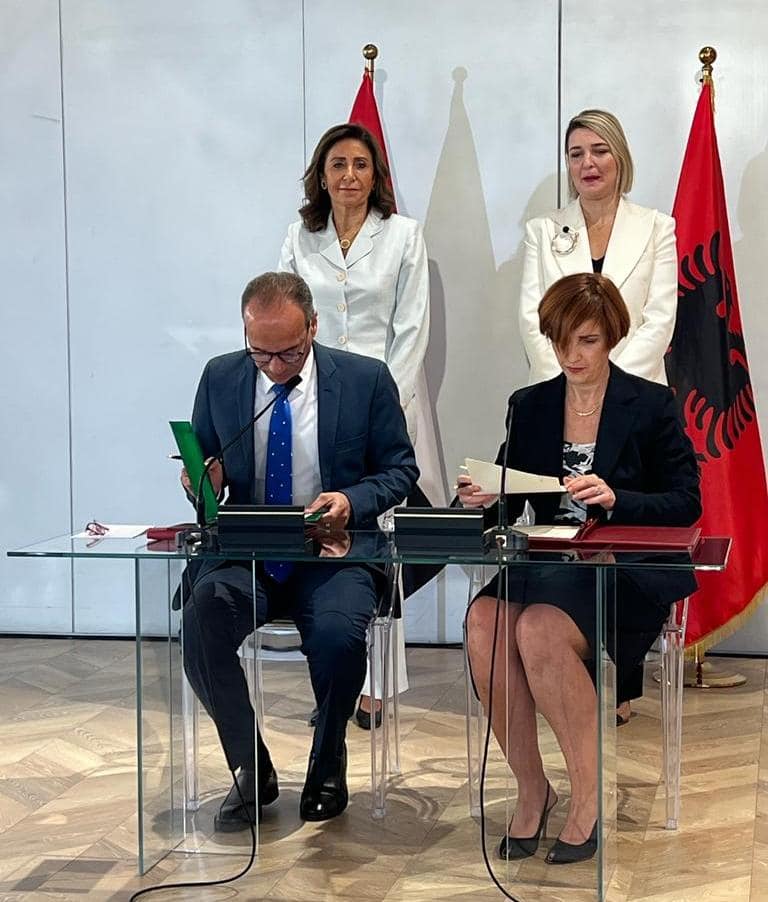 شهدت الدكتورة نيفين الكيلاني، وزيرة الثقافة المصرية، وإيلفا مارغريتي، وزيرة الثقافة بجمهورية ألبانيا، توقيع بروتوكول التعاون بين الجانبين، في المجالات الثقافية والإبداعية، في حضور السفير محمد حيدر، سفير مصر بألبانيا، وذلك ضمن مشاركتها في فعاليات الأسبوع الثقافي المصري الألباني، والذي يُقام بالعاصمة الألبانية تيرانا، تحت رعاية رئيس الوزراء الألباني، خلال الفترة من 19 وحتى 25.