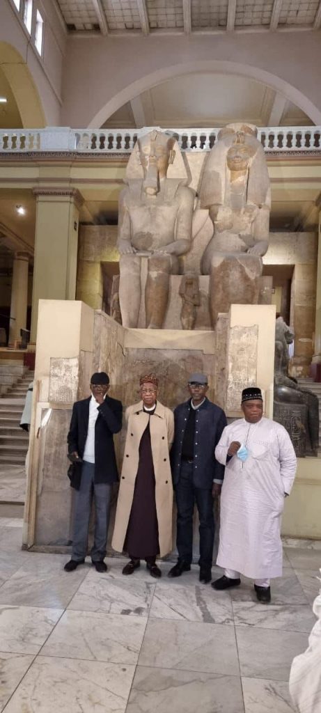 بعد الانتهاء من زيارتهم لمنطقة أهرامات الجيزة، امس الأبعاء، توجه (Lai Mohamed) لاي محمد وزير الإعلام والثقافة والسياحة بدولة نيجيريا والوفد المرافق، إلى المتحف المصري بالتحرير، حيث كان في استقبالهم صباح عبد الرازق، مدير عام المتحف و التي رحبت بهم وشرحت لهم نبذة عن المتحف وأهم المقتنيات به.