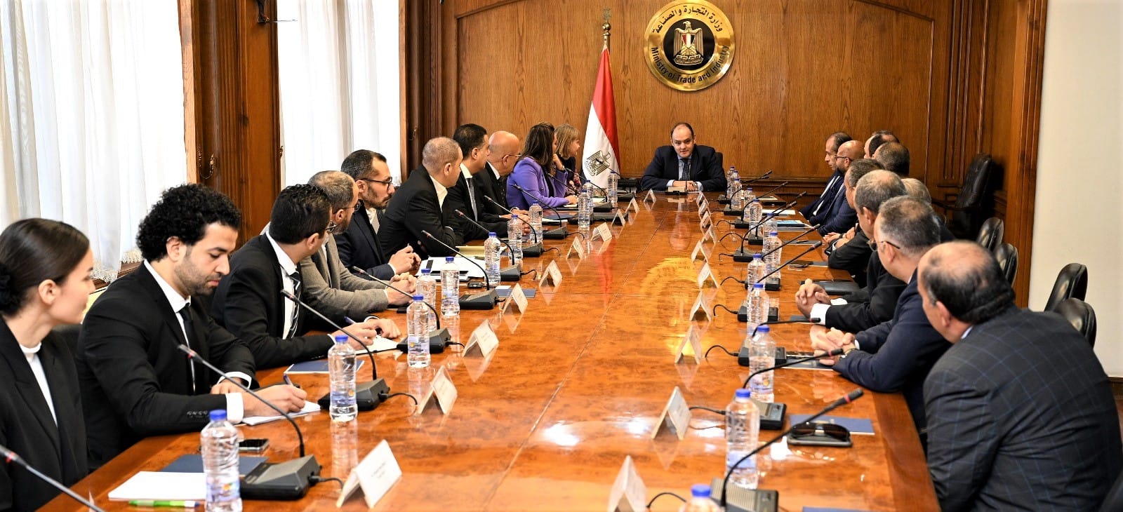 عقد المهندس أحمد سمير وزير التجارة والصناعة اجتماعاً مع عدد من كبريات الشركات الدنماركية العاملة بالسوق المصري في مجالات الأدوية والصناعات الثقيلة والأعلاف والصناعات الغذائية والنقل والشحن والبرمجيات والمنتجات الزراعية لبحث سبل تنمية أعمالهم بالسوق المصري والمساعدة في التغلب على التحديات التي تواجه هذه الشركات، وذلك بحضور السيدة سارة جوتفريدسن القائم بأعمال سفير الدنمارك بالقاهرة، وقد شارك في اللقاء الوزير مفوض تجاري يحيى الواثق بالله رئيس جهاز التمثيل التجارى.