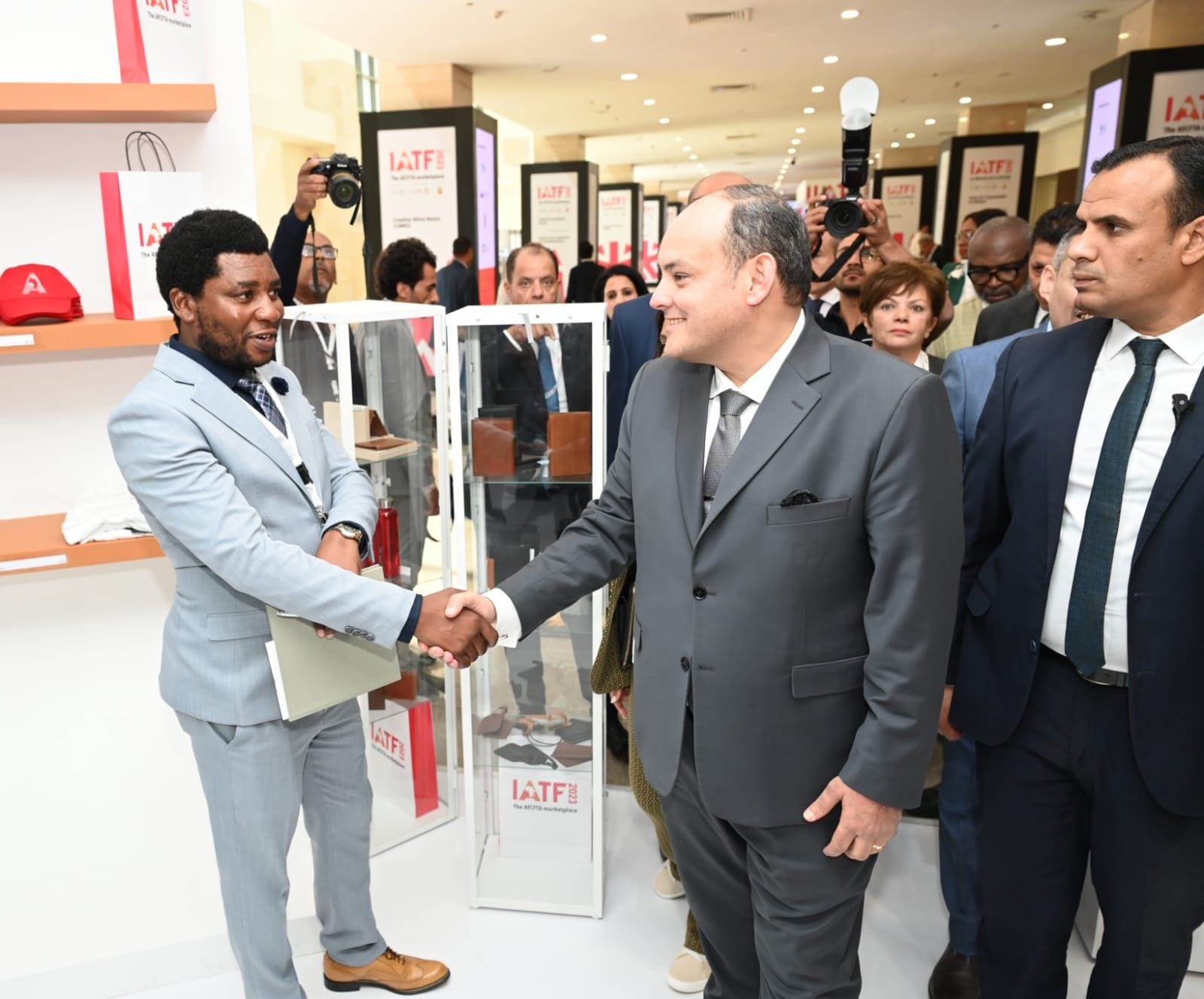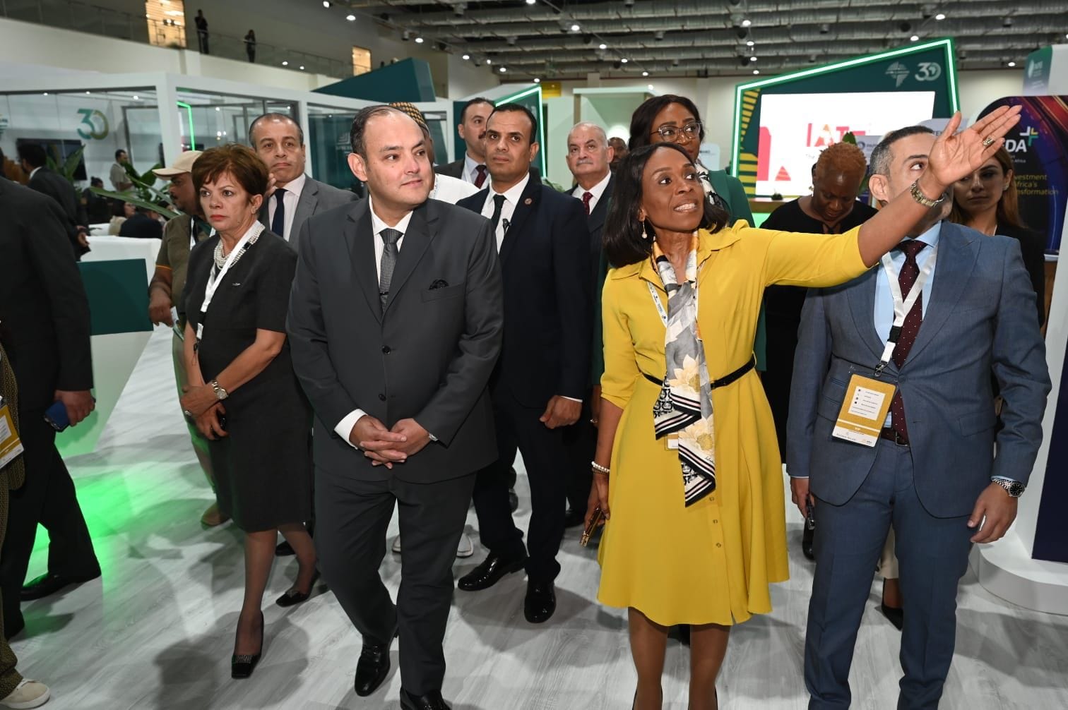 تفقد المهندس أحمد سمير وزير التجارة والصناعة أجنحة المعرض الأفريقي للتجارة البينية برفقة السيدة/ كانايو أواني، نائب رئيس البنك الأفريقي للتصدير والاستيراد “أفريكسيم بنك”، والسيدة/ مي عسل رئيس الهيئة المصرية للمعارض والمؤتمرات، والسيد أيمن الزغبي مدير إدارة الاستثمارات بالبنك.