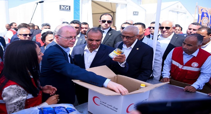 تفقد وزير الخارجية والهجرة وشئون المصريين في الخارج الدكتور بدر عبد العاطي، ورئيس الوزراء الفلسطيني محمد مصطفى، مركز الإمدادات الغذائية وتجهيز المساعدات لدعم غزة التابع للهلال الأحمر المصري بمدينة العريش، يرافقهما وزيرة التضامن الاجتماعي الدكتورة مايا مرسي، وعدد من الوزراء الفلسطينيين.