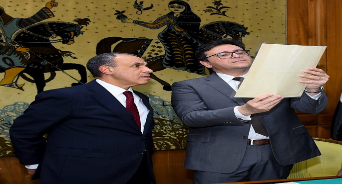 وقام الوزير عبد العاطي خلال الجولة باستلام الوثائق والمستندات والخرائط الخاصة بوزارة الخارجية، والتي تم الانتهاء من ترميمها داخل معامل دار الكتب والوثائق القومية، في إطار التعاون القائم بين الجانبين في مجالات الترميم والرقمنة، والتي شملت 13 خريطة و22 وثيقة و43 اتفاقية تم إبرامهم في عهد نظارة الخارجية ووزارة الخارجية في العهد الملكى، وذلك تمهيداً لتضمين تلك الوثائق فى متحف وزارة الخارجية المقرر افتتاحه بمقر الوزارة قريباً.