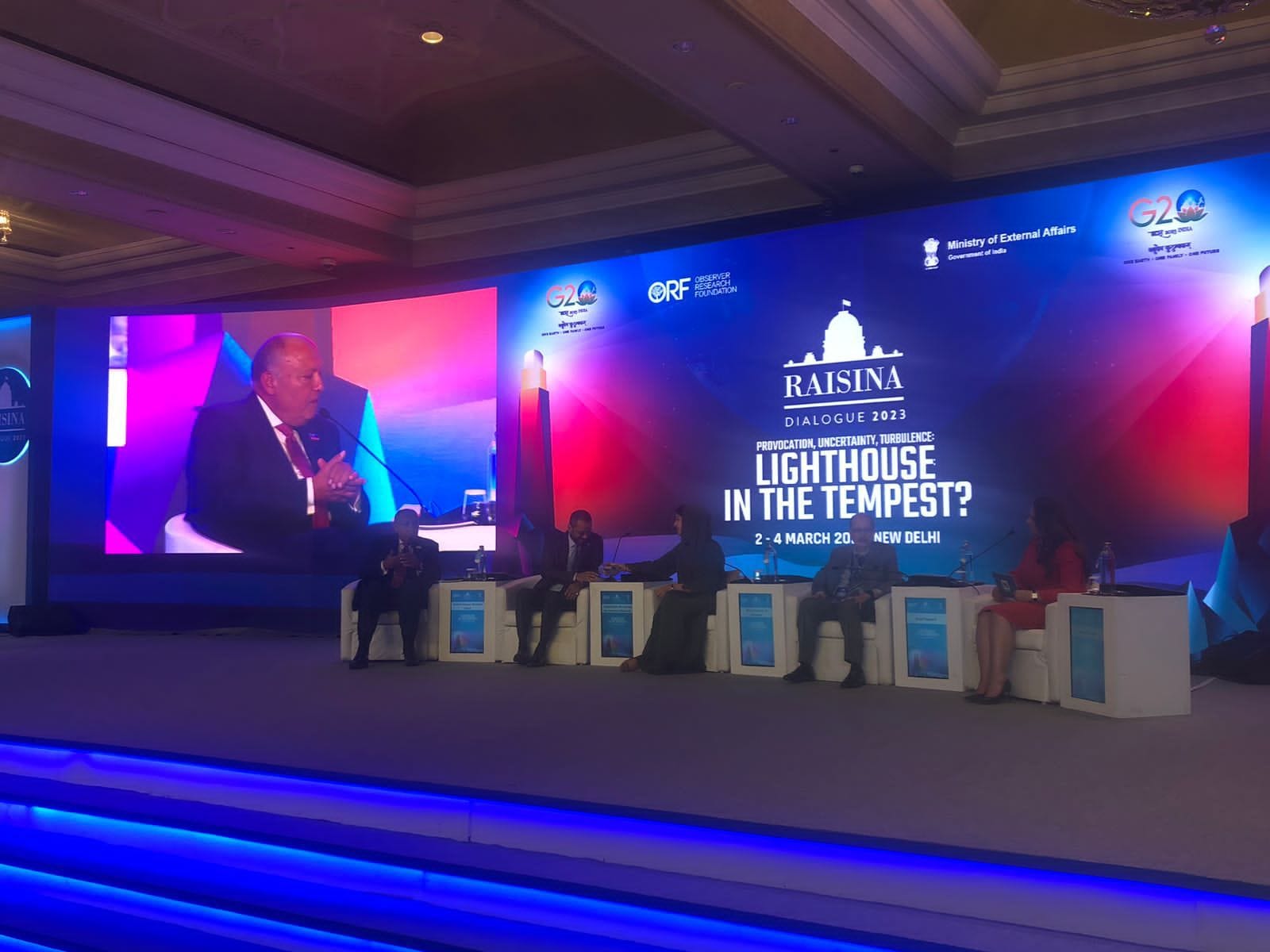 شارك وزير الخارجية سامح شكري في جلسة حوارية بعنوان “إقليم من الفرص: من البحر المتوسط لبحر العرب” خلال أعمال منتدى “رايسينا” المنعقد اليوم 3 مارس الجاري في العاصمة الهندية نيودلهي، والتي شارك فيها أيضاً وزير خارجية سلطنة عمان ووزيرة الدولة الإماراتية للتعاون الدولي.