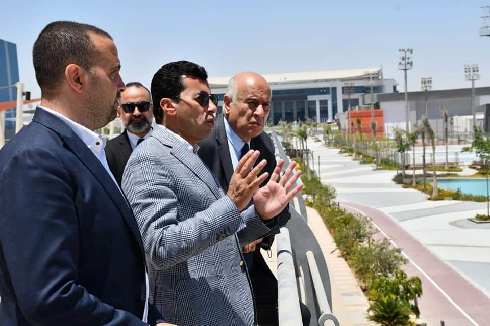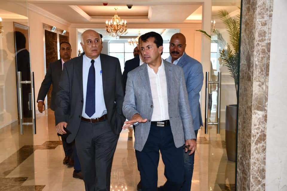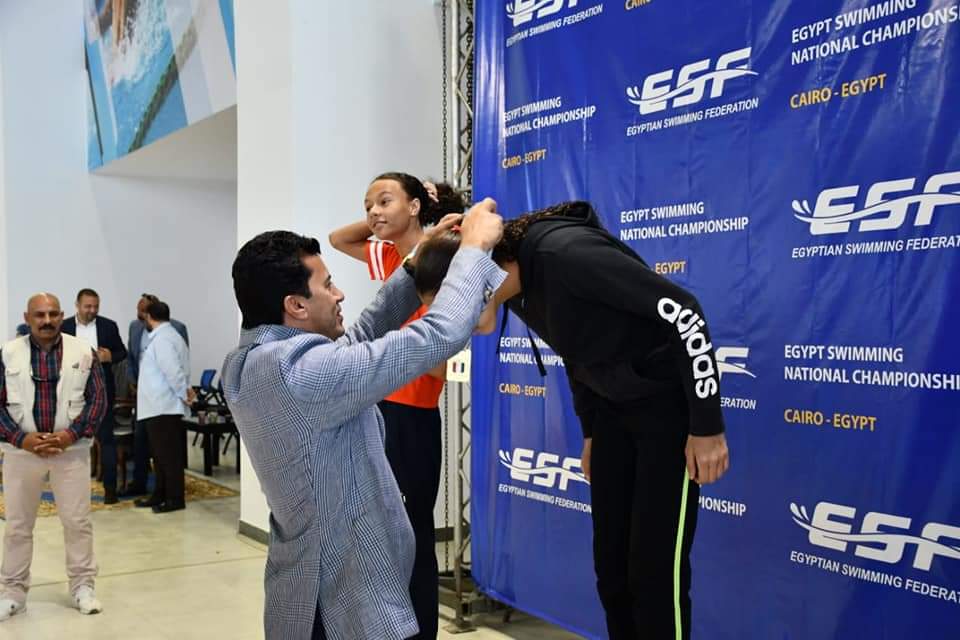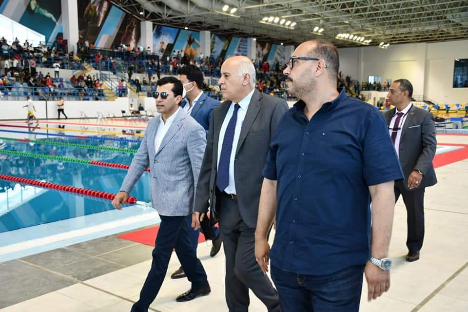 بالصور.. وزير الرياضة ونظيره الفلسطيني يشهدان بطولة الجمهورية للسباحة
