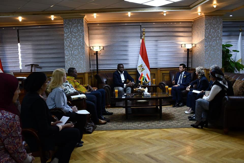 التقي الدكتور أشرف صبحي وزير الشباب والرياضة، مصطفى يوسف وزير الشباب والرياضة الغاني، لبحث سُبل تعزيز أواصر التعاون المشترك بين مصر وغانا بالمجال الشبابي والرياضي.