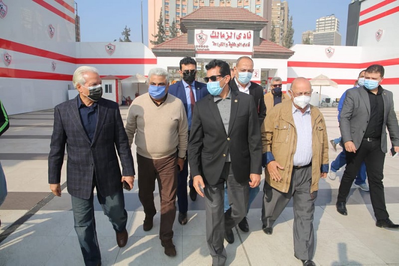 بالصور .. وزير الرياضة يتابع تطبيق الإجراءات الاحترازية بالأهلي والزمالك والترسانة