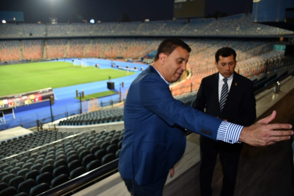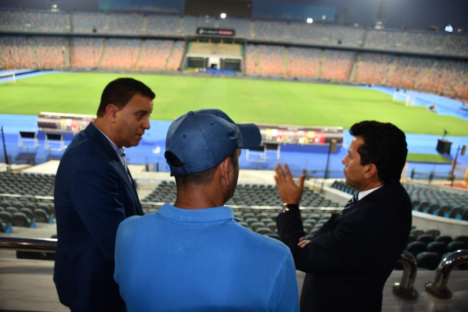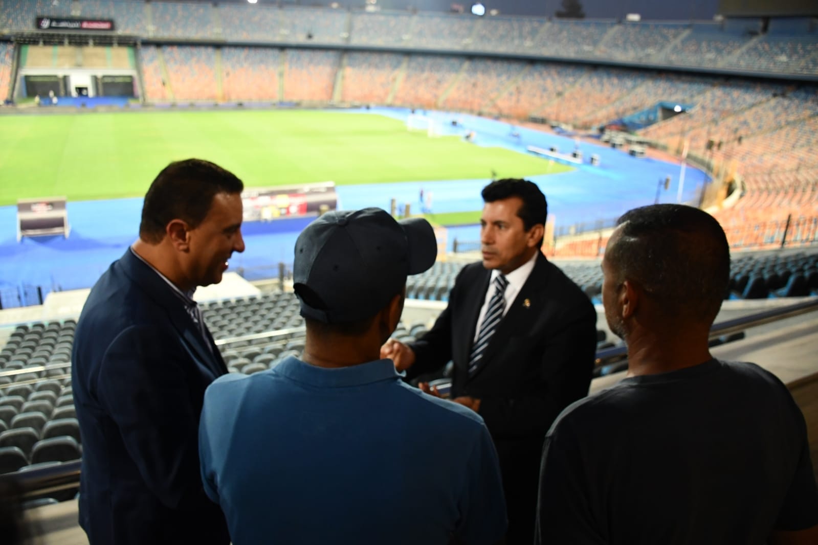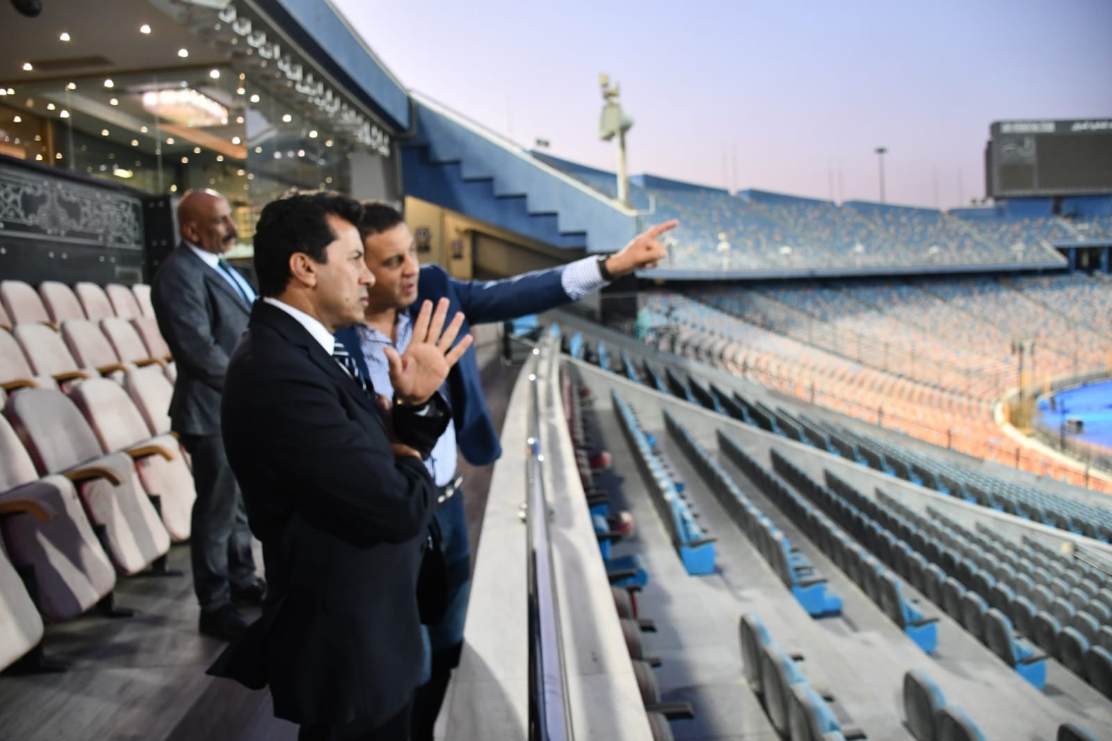 ورافق وزير الرياضة خلال جولته وليد عبد الوهاب المدير التنفيذي لاستاد القاهرة الدولي.