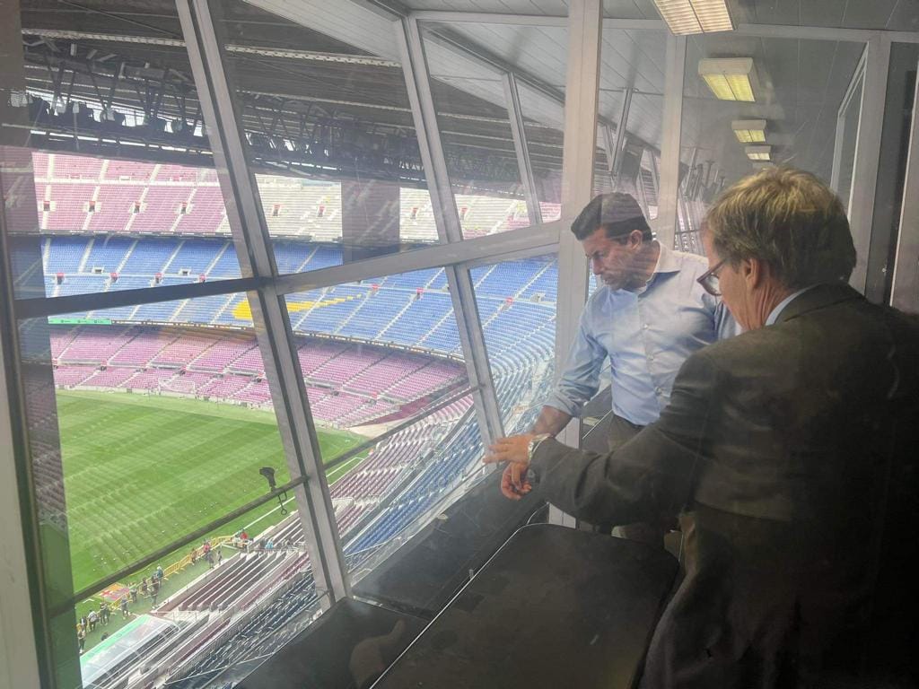 استمع الدكتور أشرف صبحى إلى خطط التسويق الرياضى لملعب “الكامب نو”، وأخر التطورات المتعلقة بالملعب الجديد، والرؤية الشاملة الخاصة بالتسويق لأنشطة نادى برشلونة وإستاد كامب نو الذى يعد من أعرق الملاعب الأوروبية.