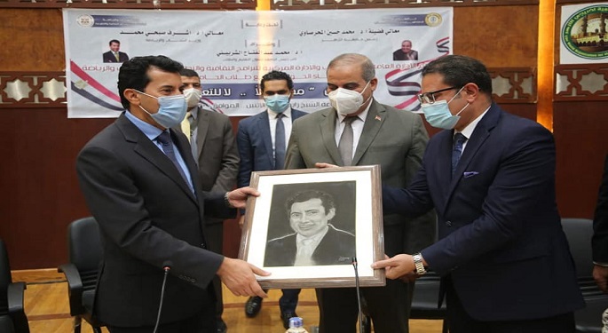 جاء ذلك خلال اللقاء الحواري، الذي عقده وزير الشباب والرياضة مع شباب وفتيات جامعة الأزهر؛ لاستعراض مبادرة وزارة الشباب والرياضة والمجلس الأعلى لتنظيم الإعلام (مصر أولاً.. لا للتعصب)، بحضور الدكتور محمد المحرصاوي رئيس جامعة الأزهر والدكتور محمد عبد الفتاح الشربيني نائب رئيس الجامعة لشئون التعليم والطلاب والدكتور عمرو حداد مساعد الوزير ولفيف من قيادات الجامعة والوزارة.