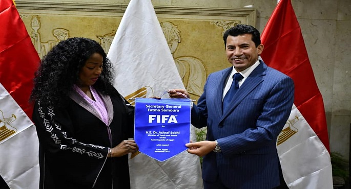 استقبل الدكتور أشرف صبحى وزير الشباب والرياضة ،اليوم الأحد فاطمة سامورا أمين الاتحاد الدولى لكرة القدم (الفيفا) ،وفيرون أومبا الأمين العام للاتحاد الإفريقي لكرة القدم (الكاف) والوفد المرافق لهم ،بمقر الوزارة، للتباحث حول تكثيف أوجه التعاون المشترك.