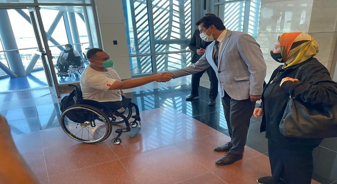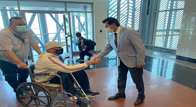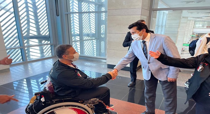 بالصور.. وزير الرياضة يستقبل البعثة المصرية البارالمبية بمطار القاهرة