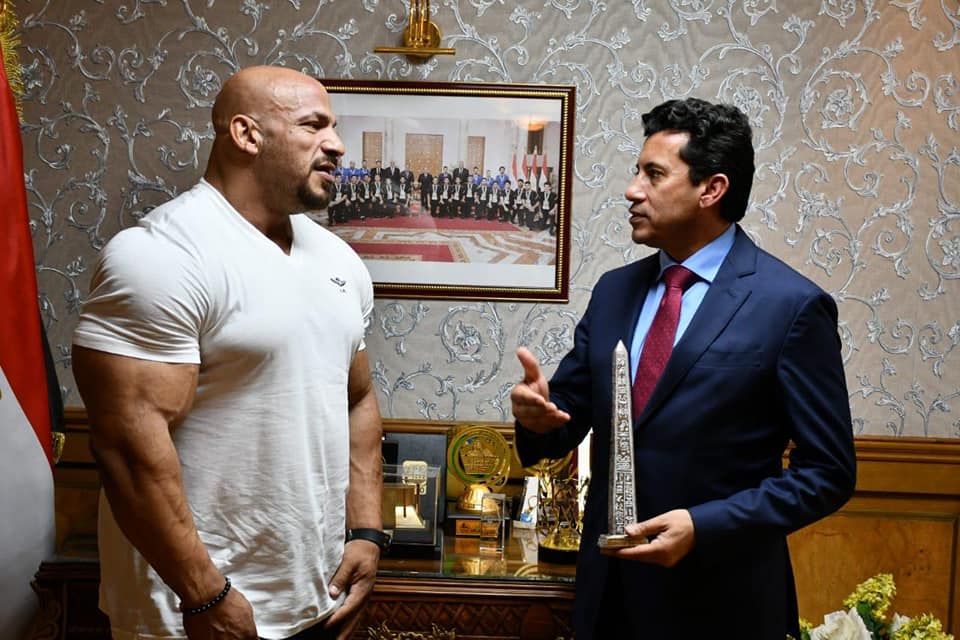 بالصور.. وزير الرياضة يستقبل بيج رامي الفائز للمرة الثانية على التوالي بلقب مستر أولمبيا