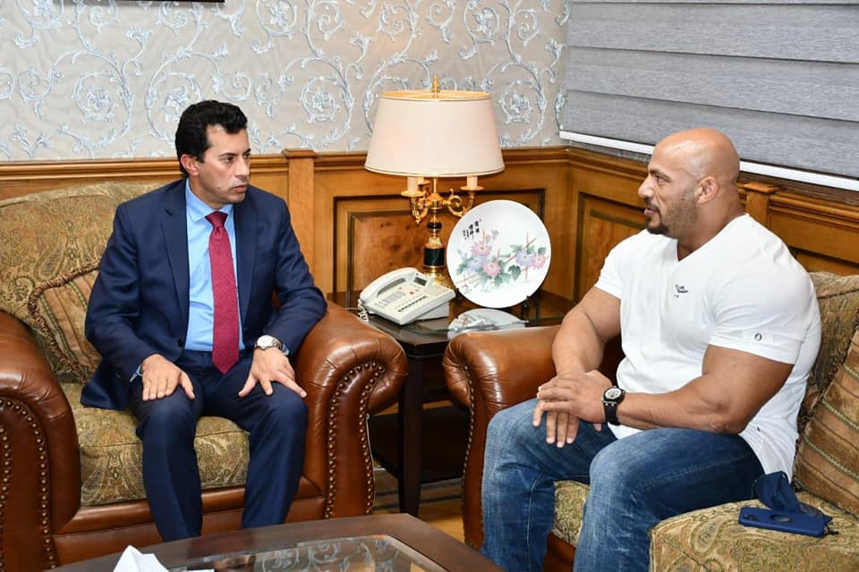 استقبل أشرف صبحي وزير الشباب والرياضة، بمكتبه بديوان عام الوزارة اليوم الخميس، اللاعب ممدوح السبيعي الشهير بـ “بيج رامي” الفائز بلقب بطولة مستر أولمبيا في نسخة عام 2021 للعام الثاني على التوالي، والتي أقيمت بمدينة أورلاندو في ولاية فلوريدا بالولايات المتحدة الأمريكية.