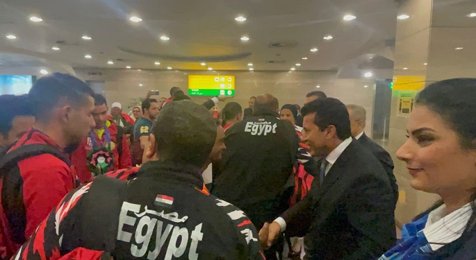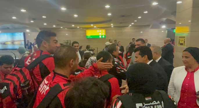 وكان في استقبال البعثة في مطار القاهرة الدولي الدكتور أشرف صبحي وزير الشباب والرياضة والدكتور حسام الدين مصطفى رئيس اللجنة البارالمبية المصرية، وعمرو الحداد مساعد وزير الشباب والرياضة للتنمية الرياضية، سونيا دنيا رئيس الإدارة المركزية للتنمية الرياضية بوزارة الشباب والرياضة.
