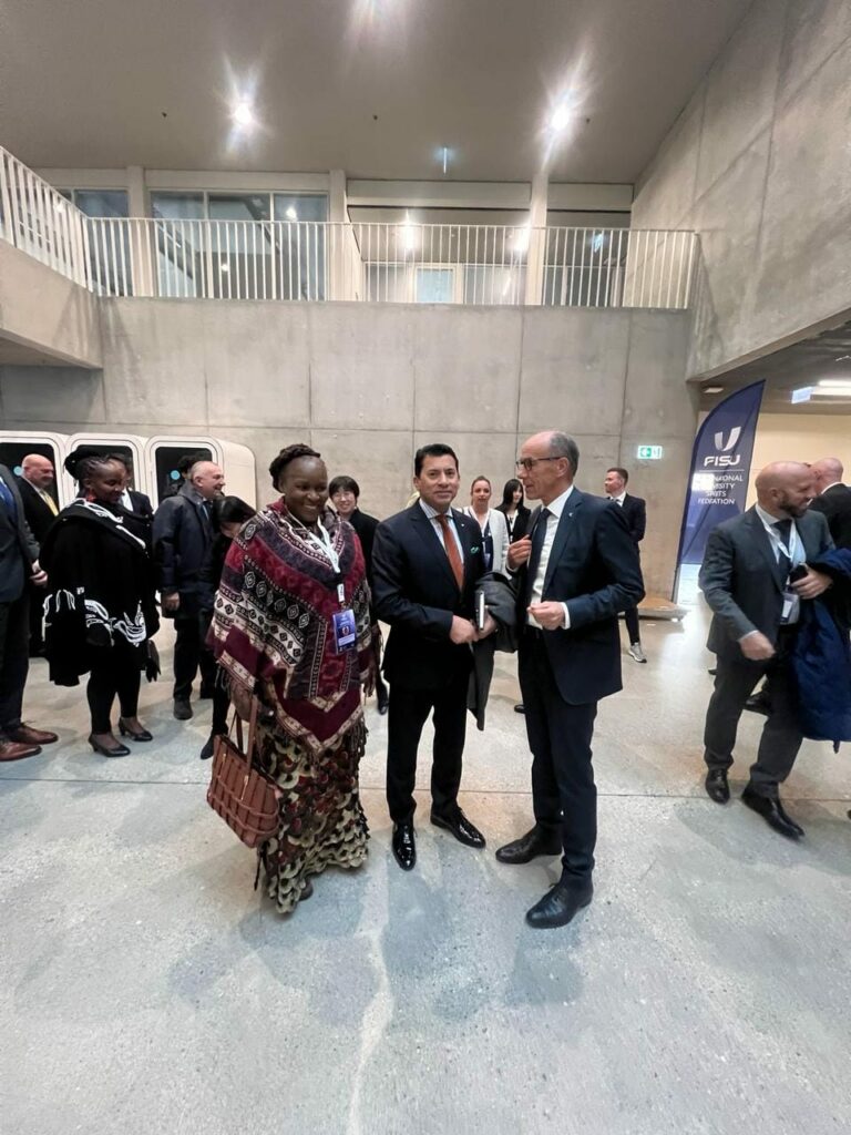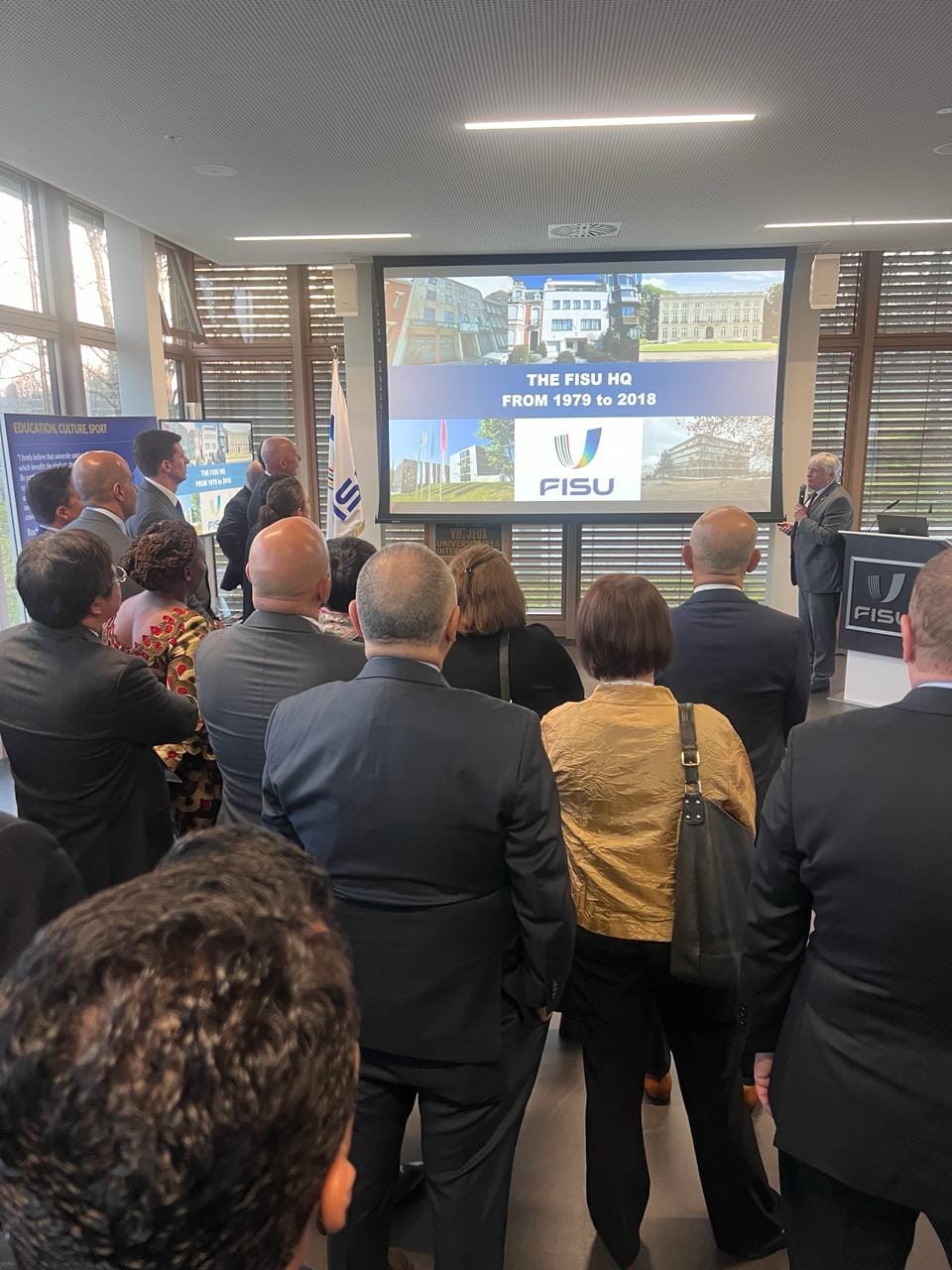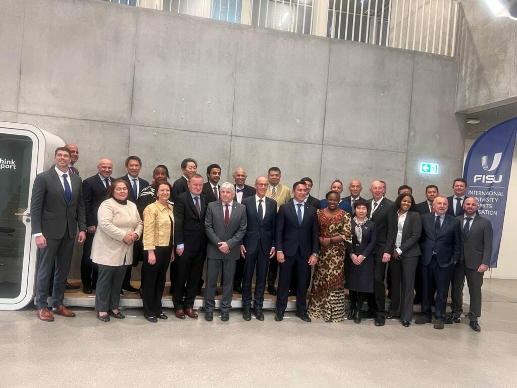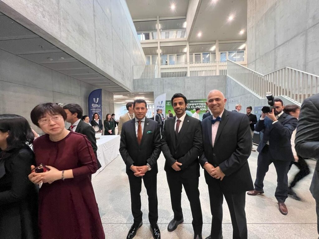 بحضور السويسري ليونز ايدير رئيس الاتحاد الدولي للرياضة الجامعية، السفير الدكتور أحمد إيهاب جمال الدين، مندوب مصر الدائم لدى الأمم المتحدة بجنيف، ولفيف من الأعضاء علي المستوي الدولي وكافة الاتحادات المحلية والإقليمية.
