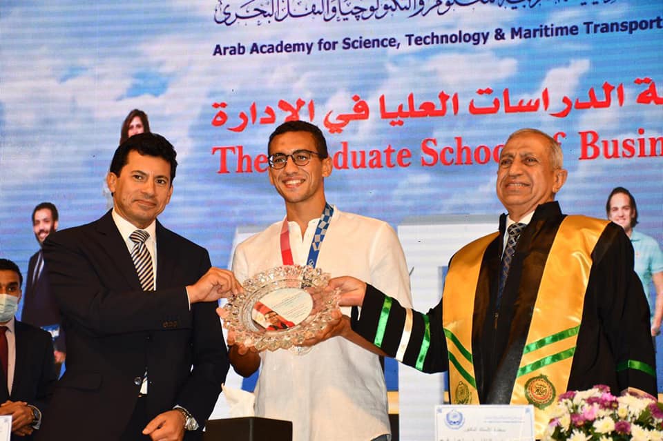 شهد الدكتور أشرف صبحى وزير الشباب والرياضة، تكريم الأكاديمية العربية للعلوم والتكنولوجيا والنقل البحرى أبطال مصر وأبنائها الطالب سيف عيسى خريج كلية الإدارة، وأحمد الجندى الطالب بكلية الهندسة والحاصلين على ميداليات بدورة الألعاب الأولمبية بطوكيو.