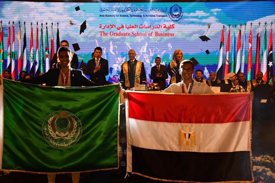 وجاء ذلك خلال حفل تخرج دفعة جديدة من طلبه كلية الدراسات العليا فى الإدارة (فرع القاهرة) بالأكاديمية العربية للعلوم والتكنولوجيا والنقل البحرى، والذي بلغ عددهم ٣٠٠ خريجاً، ينتمون إلى دول ” ليبيا – اليمن – مصر – سوريا “.