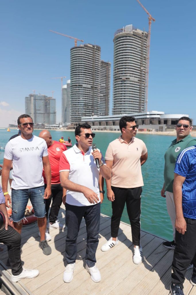 لفت وزير الرياضة إلى حالة الحراك الرياضى التى تشهدها مدينة العلمين الجديدة من خلال المشروعات والمهرجانات والفعاليات الرياضية المتنوعة، مثنياً على إقبال الشباب ومشاركتهم فى تلك الفعاليات، وانبهارهم بمدينة العلمين الجديدة.