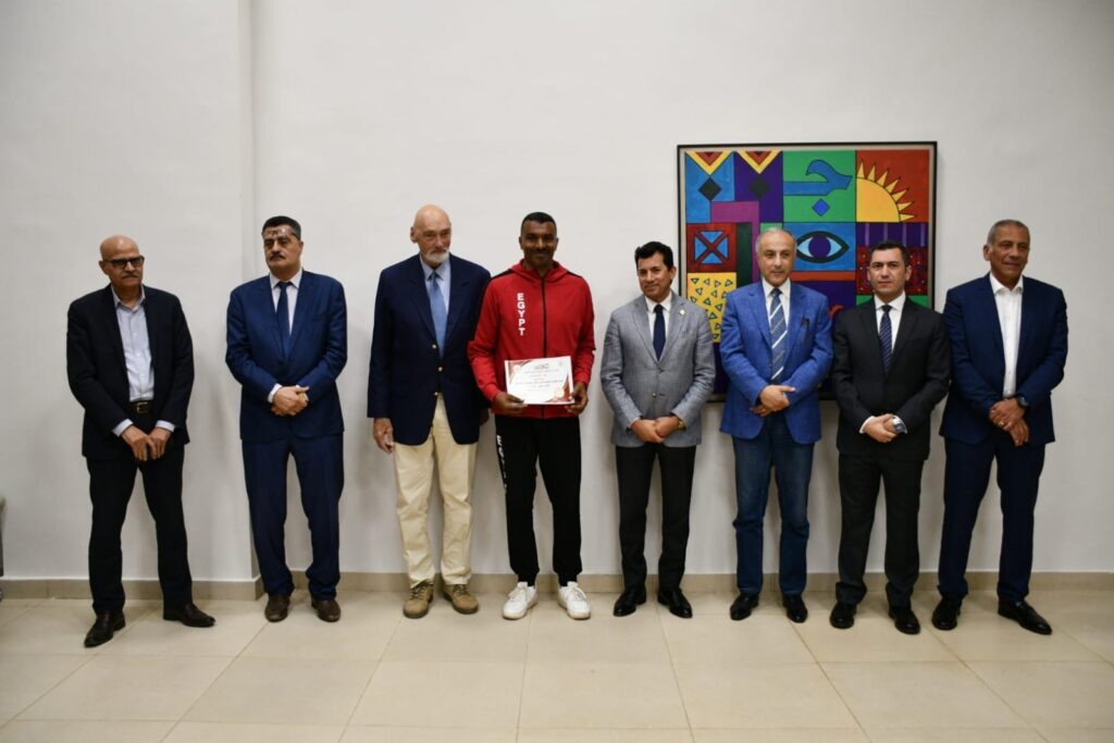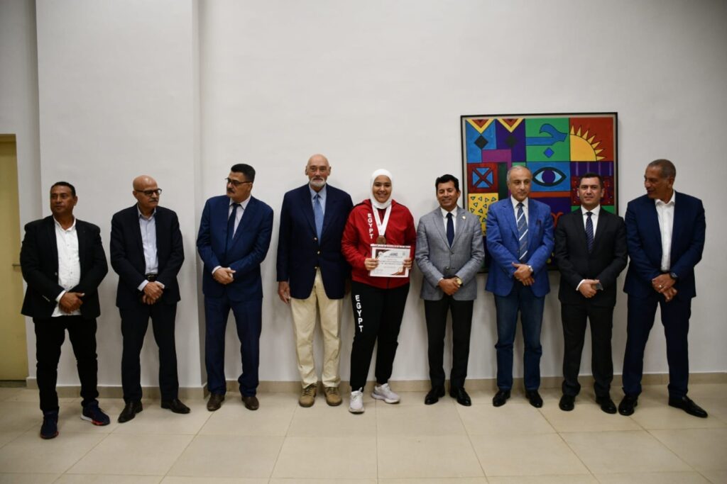 حضر التكريم الدكتور عادل رضوان رئيس قطاع الرياضة بوزارة الشباب والرياضة والدكتور محمد الكردي رئيس الادارة المركزية للاداء الرياضي وماهر الغريب مدير عام التكريم بوزارة الرياضة