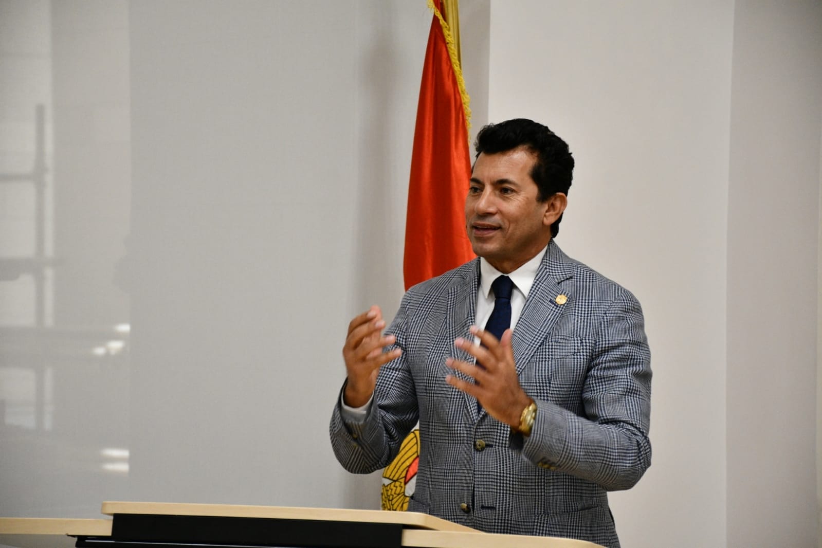 كما أشار إلى دور وزارة الرياضة فى جلب العديد من شركات القطاع الخاص لدعم اللاعبين أثناء تمثيلهم للمنتخبات المصرية فى مختلف البطولات وايضا ندعم المنتخبات القومية المشاركة فى الاوليمبياد القادم باريس ٢٠٢٤.
