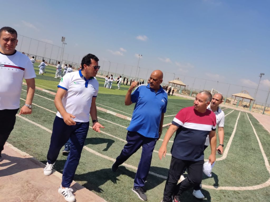 بالصور.. وزير الرياضة يتفقد ملاعب الأسمرات ويشارك في ماراثون رياضي