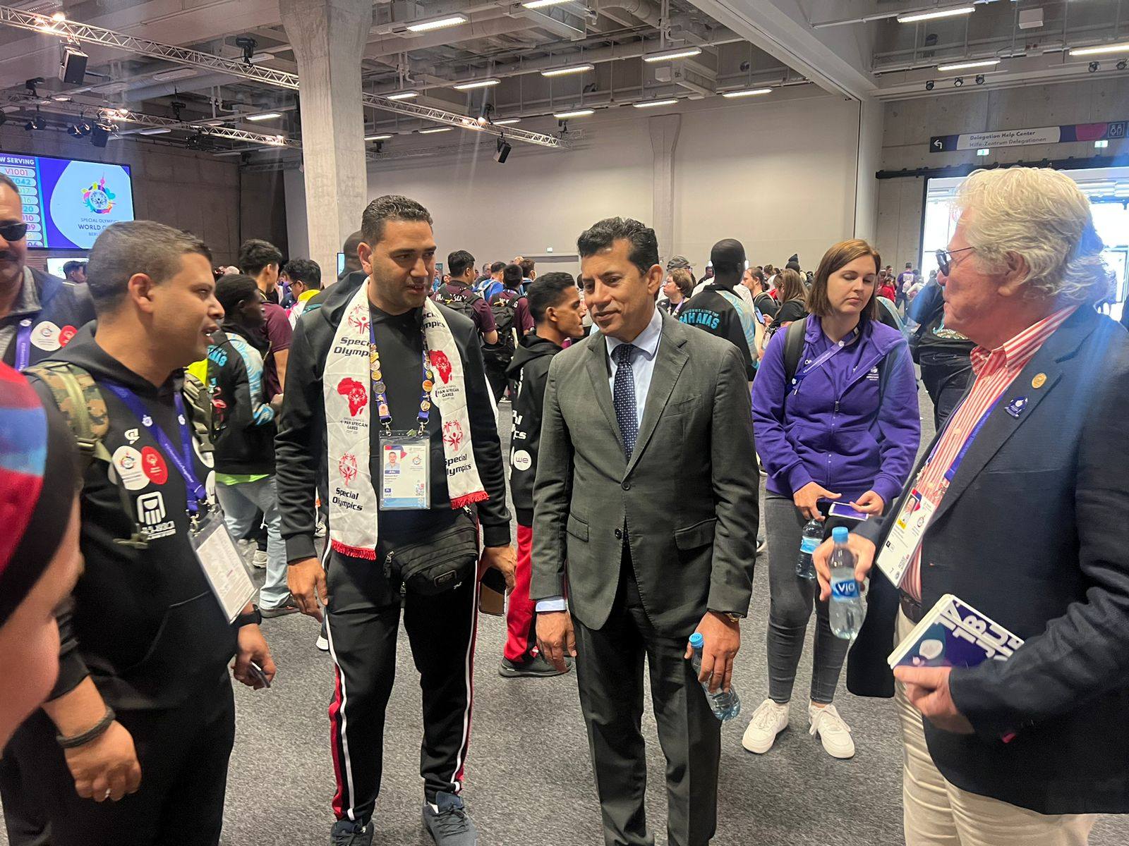 وخلال تواجده، حرص وزير الشباب والرياضة على الالتقاء بلاعبي البعثة المصرية لتحفيزهم قبل مشاركاتهم في البطولة، بحضور الفنان حسين فهمي سفير الاولمبياد الخاص، مؤكداً تقديم الدعم الكامل من القيادة السياسية لكافة أفراد البعثة، لتحقيق انجازات جديدة للرياضة المصرية على مستوي الأولمبياد الخاص.