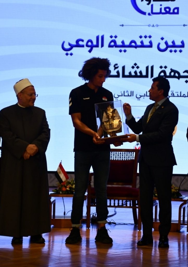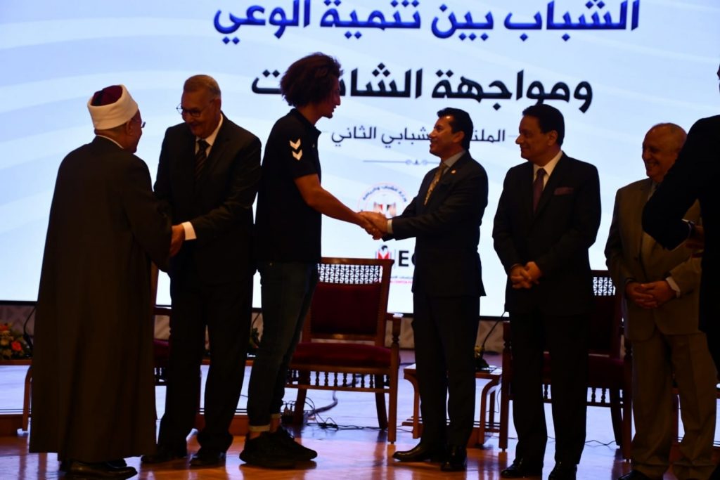 فيما توجه النجم المصري علي زين لاعب المنتخب المصري لكرة اليد ولاعب فريق دينامو بوخارست الروماني المنتقل إليه حديثًا قادمًا من برشلونة الإسباني، بالشكر والتقدير والامتنان لوزير الشباب والرياضة علي اهتمامه الكبير بالتكريم وسط الملتقي الشبابي الهائل تحت رعاية رئيس الوزراء الدكتور مصطفي مدبولي.