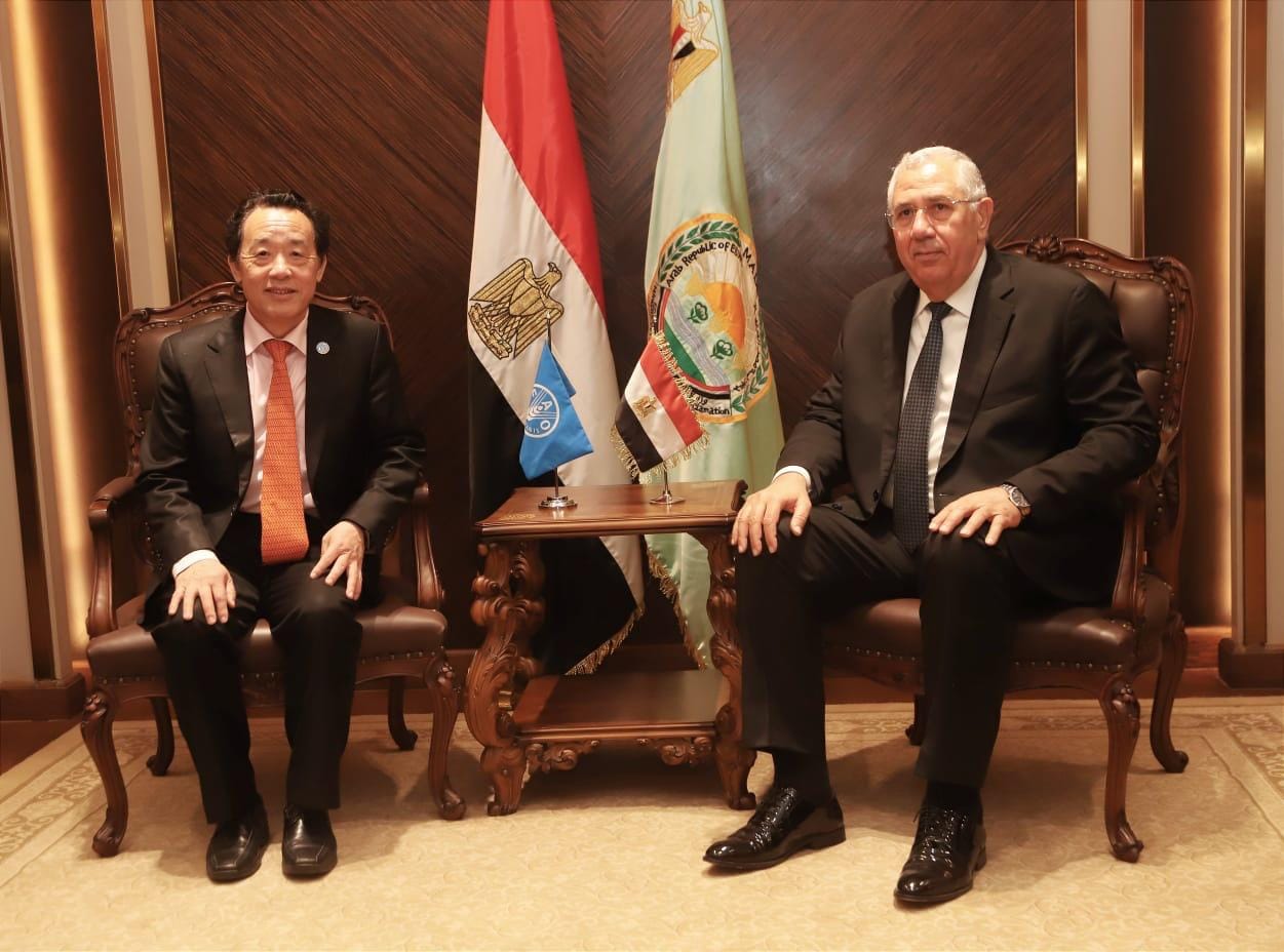 وزير الزراعة تناول مجالات التعاون مع المنظمة الدولية خلال الفترة القادمة في مجال استنباط الأصناف والتغيرات المناخية ودعم سلاسل القيمة المضافة والري الحديث وتبادل الخبرات وبناء القدرات وكذلك تطوير التعاونيات والتغلب على التفتت الحيازي .