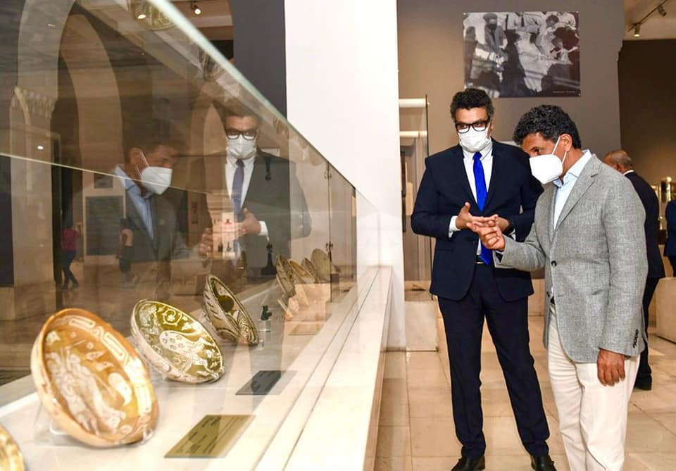 كما أشاد الوزير السعودي بالتعاون القائم بين المتحف ومركز الملك عبد العزيز ال سعود (اثراء) بالمملكة العربية السعودية والممثل في المعرض الأثري المؤقت المقام حاليا تحت عنوان “شطر المسجد” والذي يحتوي على عدد ٨٤ تحفة من مقتنيات متحف الفن الاسلامي، والمقرر استمراره بالمملكة السعودية حتى عام ٢٠٢٢.