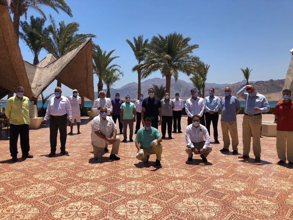 رافقه في الجولة أحمد الوصيف رئيس الاتحاد المصري للغرف السياحية، والسيد تامر مكرم رئيس جمعية مستثمري جنوب سيناء، وعبد الفتاح العاصي مساعد الوزير لشئون الرقابة على المنشآت السياحية والفندقية وسامي سليمان رئيس جمعية مستثمري السياحة بطابا ونويبع.
