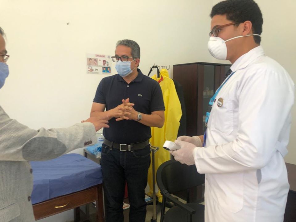 وقام الدكتور خالد العناني بتفقد الإجراءات الوقائية التي تتبعها هذه الفنادق منذ دخول الضيف من باب الفندق وإجراءات تطهير الأمتعة وقياس درجات حرارة الضيوف وتطهير اليدين، ومنطقة الاستقبال والبهو وإجراءات التسكين ومنطقة المطاعم والمطابخ والبرجولات وحمامات السباحة، والممرات الداخلية والممشى الخارجي ومنطقة الشاطئ، كما تفقد العيادات الطبية الموجودة بهذه الفنادق وطرق تجهيزها والطاقم الطبي الموجود بها.