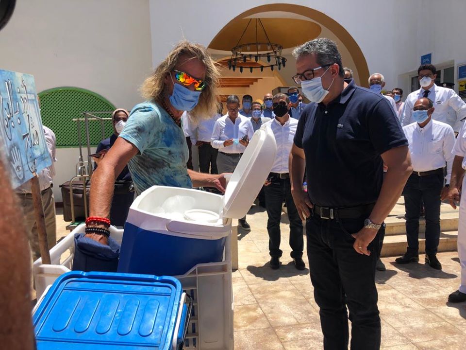وكان قد قام وزير السياحة والآثار أمس الخميس بزيارة لمدينة شرم الشيخ لتفقد بعض الفنادق، وحرص خلالها على مقابلة السائحين المتواجدين على الشواطئ للاطمئنان على مدى الالتزام بتطبيق الاجراءات الوقائية من تباعد وغيرها من ضوابط السلامة الصحية.
