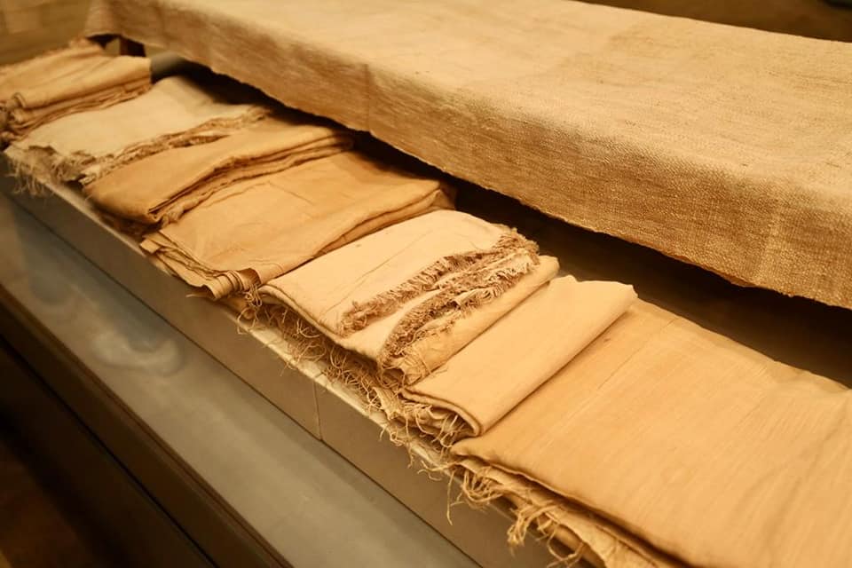 ومن جانبه قال الدكتور محمود مبروك إن من أهم القطع المعروضة أردية من الكتان ترجع للعصور القديمة المختلفة من العصر البطلمي والعصر القبطي والإسلامي والحديث، ومجموعة من النسيج الوبري والأقمشة المختلفة، بالإضافة إلى أدوات الغزل والنسج القديم، ونموذج لورشة نسيج ترجع للدولة الوسطى، وتمثال رئيس النساجين بالدولة القديمة، و مجموعة من التماثيل واللوحات التى تؤرخ الأزياء عبر العصور المختلفة بمصر القديمة.