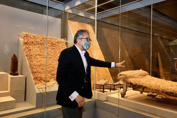 تفقد وزير السياحة والآثار الدكتور خالد العناني، مساء، مستجدات الأعمال الجارية بقاعة النسيج المصري بالمتحف القومي للحضارة المصرية بالفسطاط ، ومتابعة تطور سيناريو العرض المتحفي بها، وذلك تمهيدا لافتتاحها في غضون الأسابيع القليلة القادمة.
