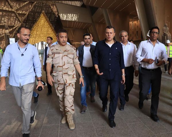 ومن جانبه، أعرب وزير السياحة والآثار عن شعوره بالفخر كمصري لما شاهده في هذا المشروع الضخم الذي يضم كنوز الحضارة المصرية وينتظره جميع المصريون والعالم، مؤكداً على ضرورة تضافر جميع الجهود لإنجاز الأعمال المتبقية بهذا الصرح الحضاري العملاق، والالتزام بالتوقيتات المحددة للإنتهاء من جميع الأعمال على أكمل وجه، واصفاً المتحف بأحد أكبر وأهم أوجه الإنفاق العام للتوظيف وتوفير فرص العمل ودعم السياحة وتحفيز وتمكين القطاع الخاص لخلق منتج سياحي جديد وتجربة سياحية خاصة تخاطب وتجذب جميع شرائح السائحين وخاصة السائحين ذات الإنفاق المرتفع، مما يعمل بدوره على زيادة الإنتاجية والأرباح.