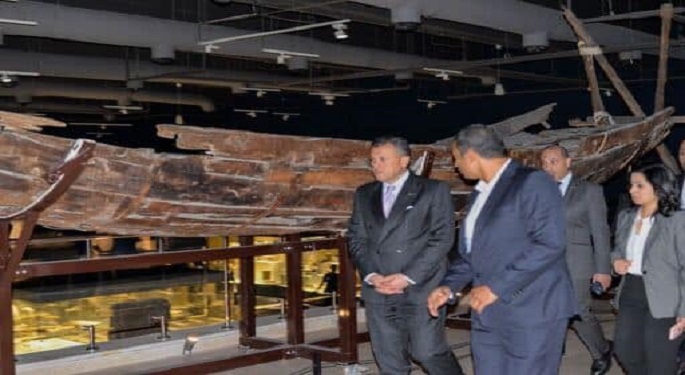 وتضمنت الجولة قاعات عرض المتحف المختلفة، والمنطقة التجارية، وقاعة المؤتمرات، حيث استمع السيد الوزير لشرح مفصل من مدير المتحف حول تاريخ إنشاء المتحف وما يضمه من مقتنيات أثرية، وفكرة سيناريو العرض الخاصه به.