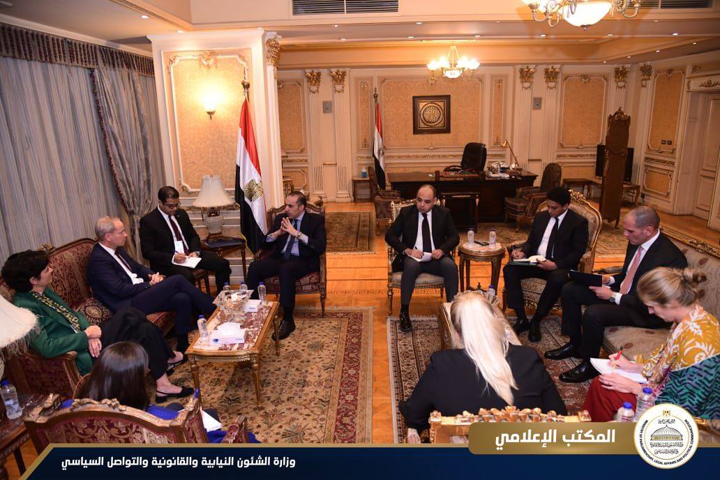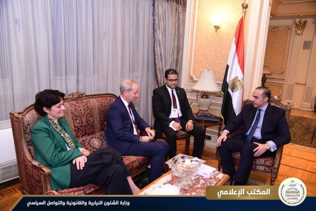 وفي ختام اللقاء، قال المستشار محمود فوزي أن وزارة الشئون النيابية والقانونية والتواصل السياسي، تعد واحدة من الوزارات المعنية بملف حقوق الإنسان في مصر تحت مظلة اللجنة العليا الدائمة بوزارة الخارجية، وأعرب عن تطلعه إلى تعزيز التعاون مع المؤسسات الأوروبية في هذا المجال، مؤكدًا على التزام الدولة المصرية بتحقيق العدالة الاجتماعية وتعزيز حقوق كافة المواطنين، كما أشار إلى أن الوزارة ستواصل جهودها بما يعزز مناخ الانفتاح ويدعم الاستقرار والتنمية.