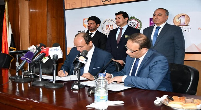 بالصور.. وزير الشباب والرياضة ورئيس مجلس إدارة الأهرام يشهدان عقد تسويق جائزة «The First»