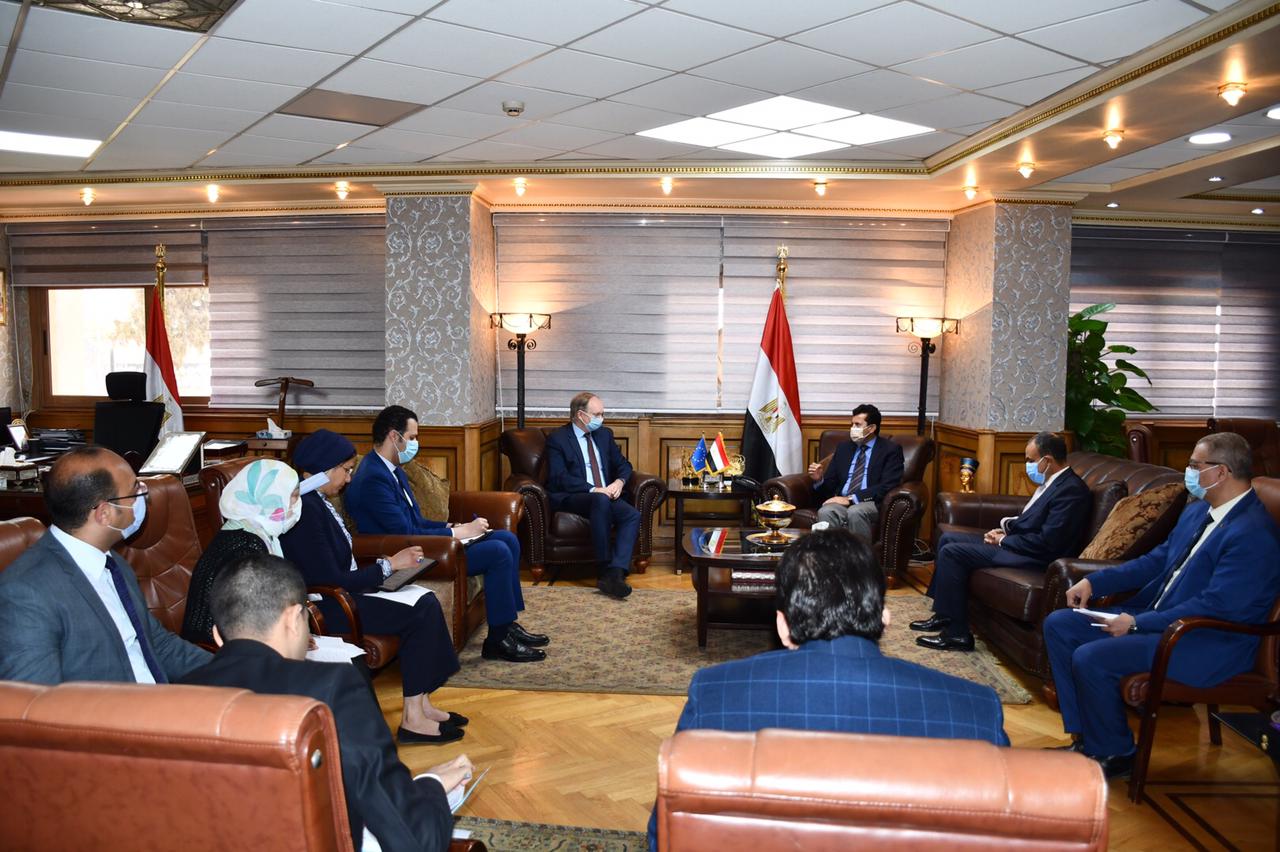 وخلال اللقاء تم بحث سبُل تعزيز التعاون المشترك بين مصر والاتحاد الأوروبي في المجال الشبابي والرياضي .