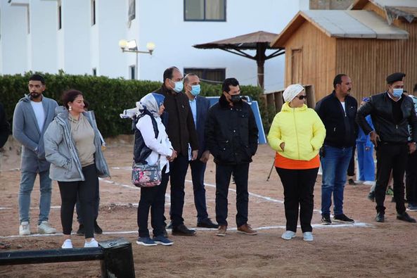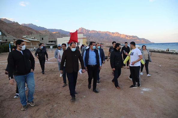رافق الوزير خلال تفقده المعسكر كل من/ سونيا عبد الوهاب رئيس الادارة المركزية للتنمية الرياضية، الدكتور أشرف البجرمي رئيس الادارة المركزية للمنشآت بالوزارة، محمد فتحي مدير مديرية الشباب والرياضة بجنوب سيناء، غاده جمال مدير عام الادارة العامة للقاعدة الشعبية.