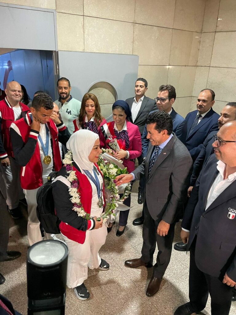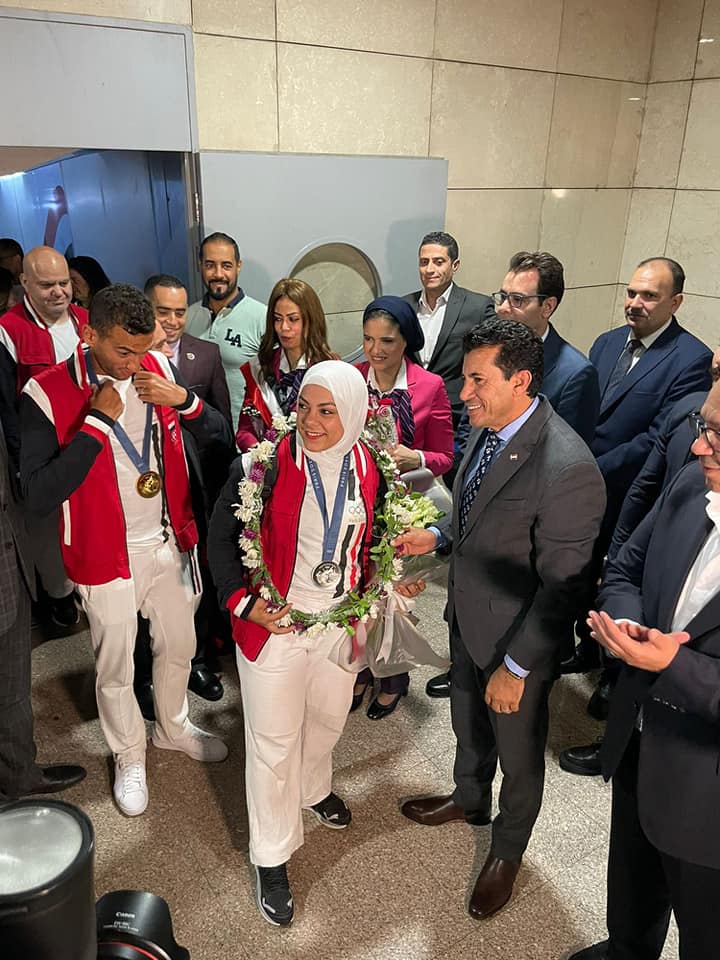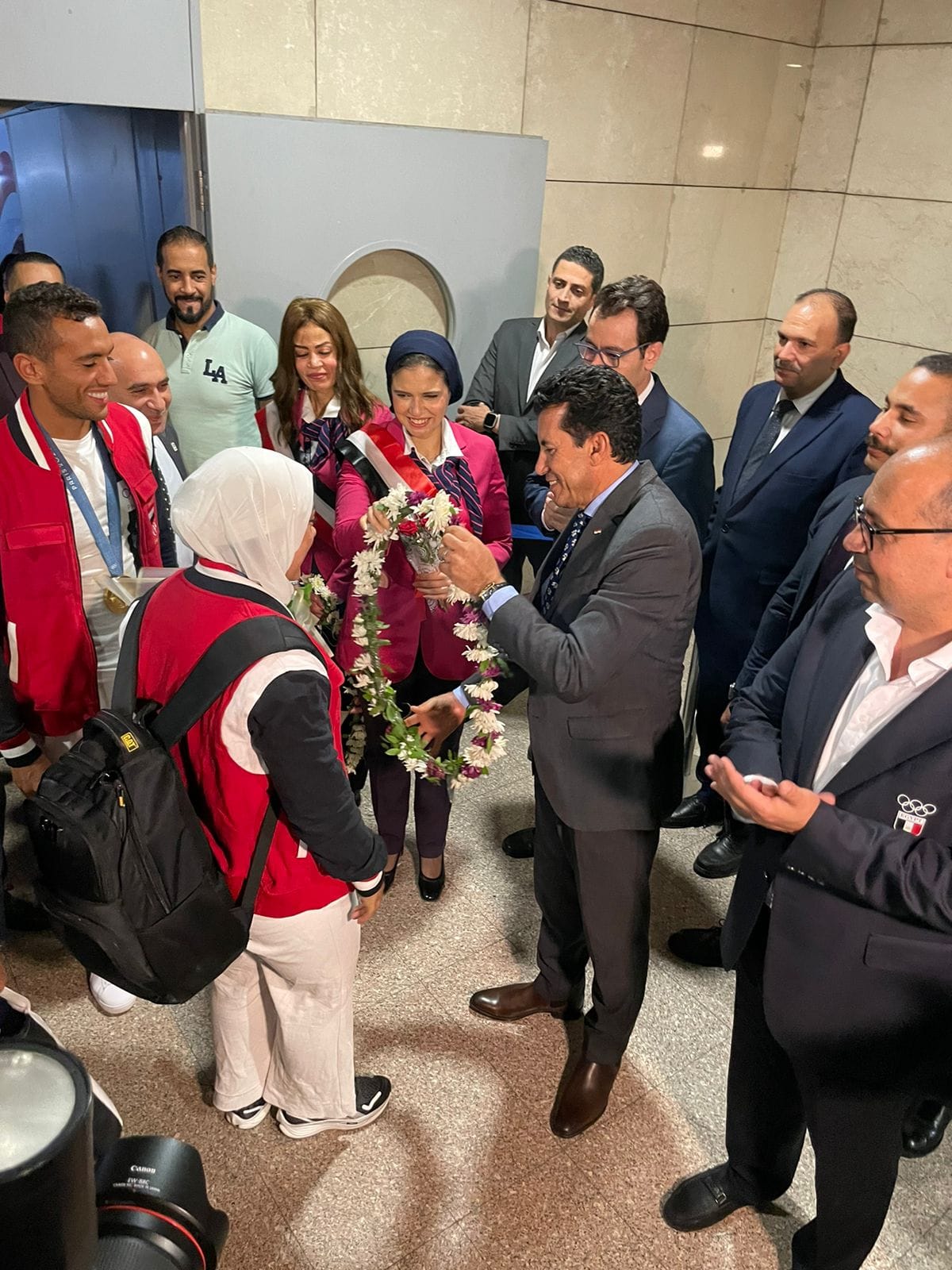 استقبل الدكتور اشرف صبحي وزير الشباب والرياضة بمطار القاهرة الدولى أبطال مصر الحاصلين على الميداليات الأوليمبية وذلك ضمن منافسات دورة الألعاب الأوليمبية باريس 2024 أحمد الجندى لاعب المنتخب المصري للخماسي الحديث والحاصل على الميدالية الذهبية وسارة سمير الحاصلة على الميدالية الفضية وكذلك جميع اللاعبين القادمين عقب انتهاء منافسات الدورة الأوليمبية.