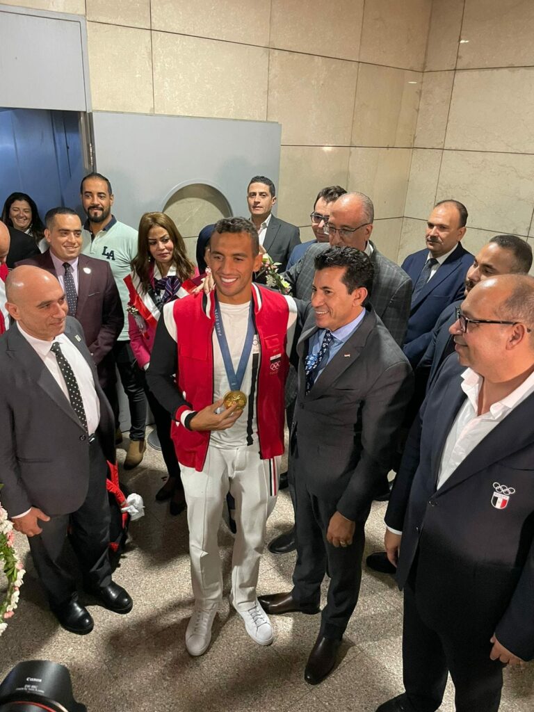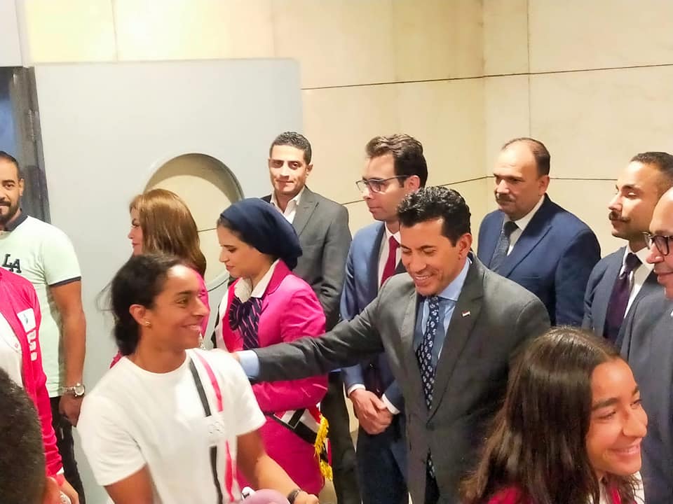 وحرص الدكتور أشرف صبحي خلال مراسم استقبال الأبطال على تشجيع جميع الأبطال أعضاء البعثة المصرية وأن المنافسات الأوليمبية يجب أن تكون البداية لتحقيق الريادة القارية والعالمية مؤكداً لهم أن الدولة مستمرة فى تهيئة المناخ المناسب للأبطال من خلال توفير كافة المتطلبات وتصحيح أية أخطاء تعتري مسارهم على كافة المستويات، وطالب وزير الشباب والرياضة الجماهير المصرية باستمرار دعم ومؤازرة الأبطال خلال الفترة المقبلة فى كافة المحافل الافريقية والعالمية تعزيزاً لقدراتهم على تحقيق الإنجازات الرياضية.